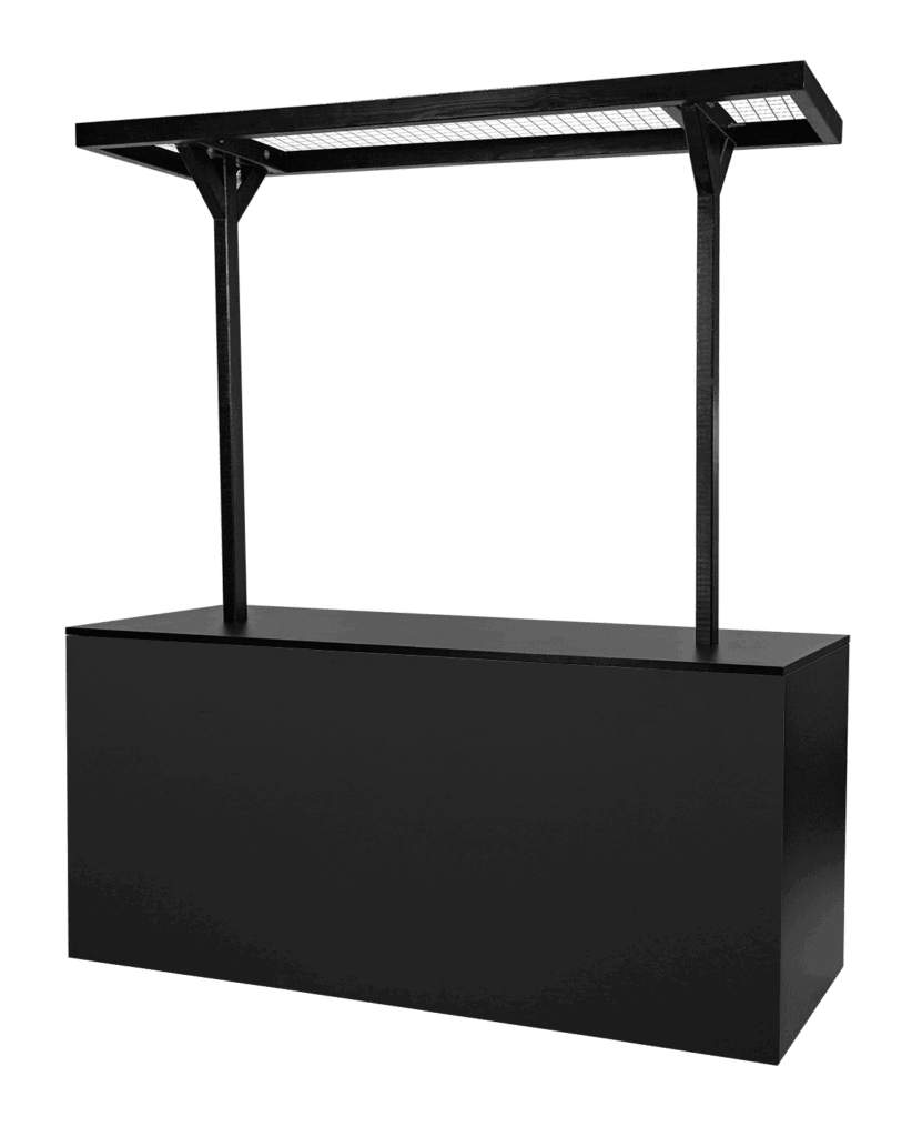 Frontverkleidung, Seitenverkleidung und Arbeitsplatteaus KS Platte schwarz. Dach aus Fichte, schwarz gestrichen mit verzinktem Gitter.