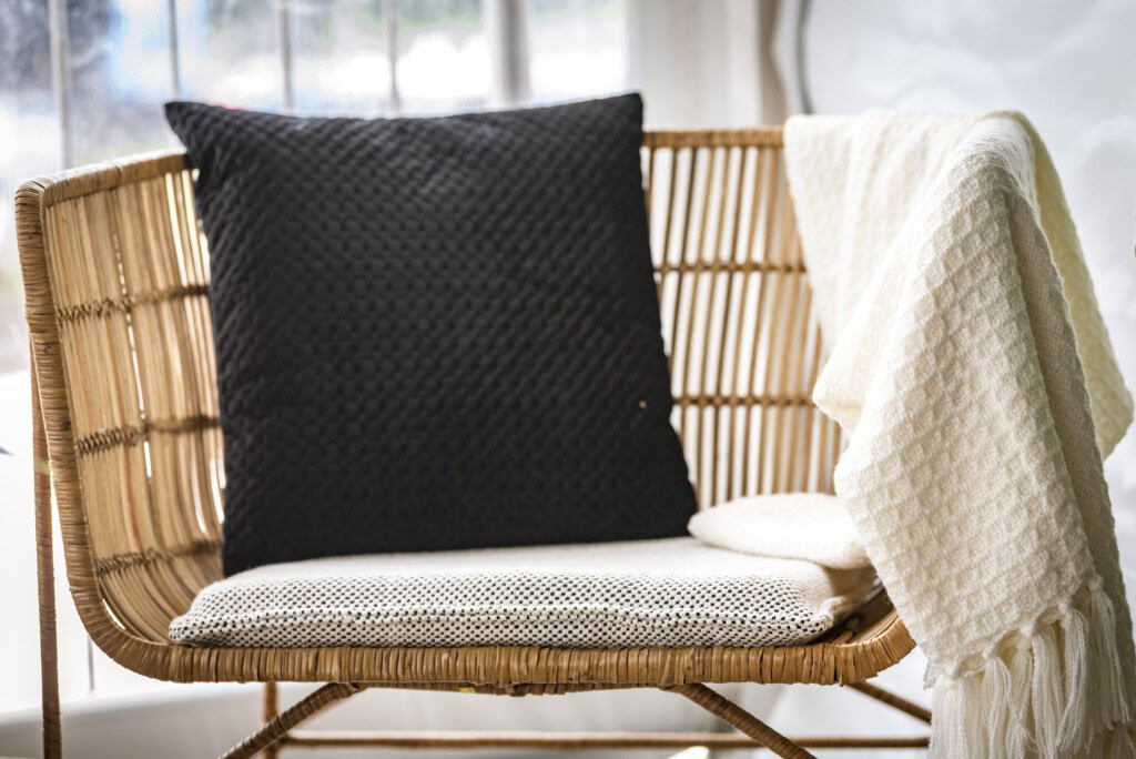 Gestell aus Eisen verkleidet mit Rattan, geflochten