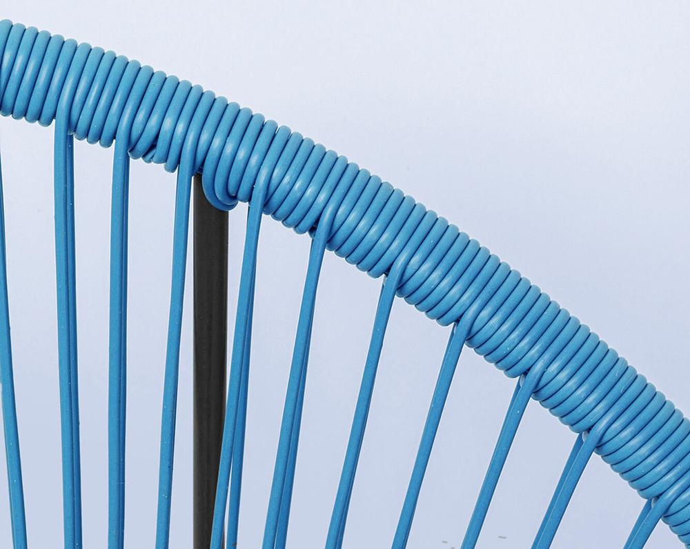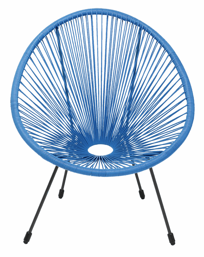 Gestell aus Stahl, schwarz lackiert, Sitzfläche aus PE-Band, blau