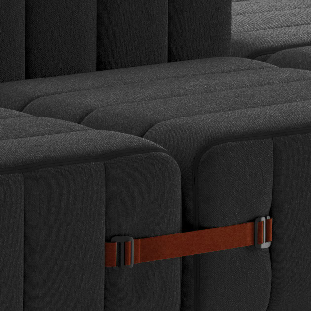 Versteckte Verbindungsschlaufen mit justierbaren Gurtbändern. Stoff Jet.
