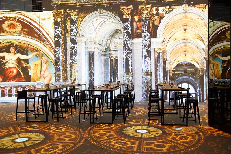 Dank modernster Technologie wird den Besucher:innen auf einer Ausstellungsfläche von 1.700 m² ein audiovisuelles, emotionales Kunsterlebnis geboten, bei welchem sie buchstäblich in die Kunstwerke eintauchen können. Die vielfältigen und individualisierbaren Projektionsmöglichkeiten und das atemberaubende architektonische Setting machen Port des Lumières darüber hinaus zu einer einzigartigen Eventlocation.